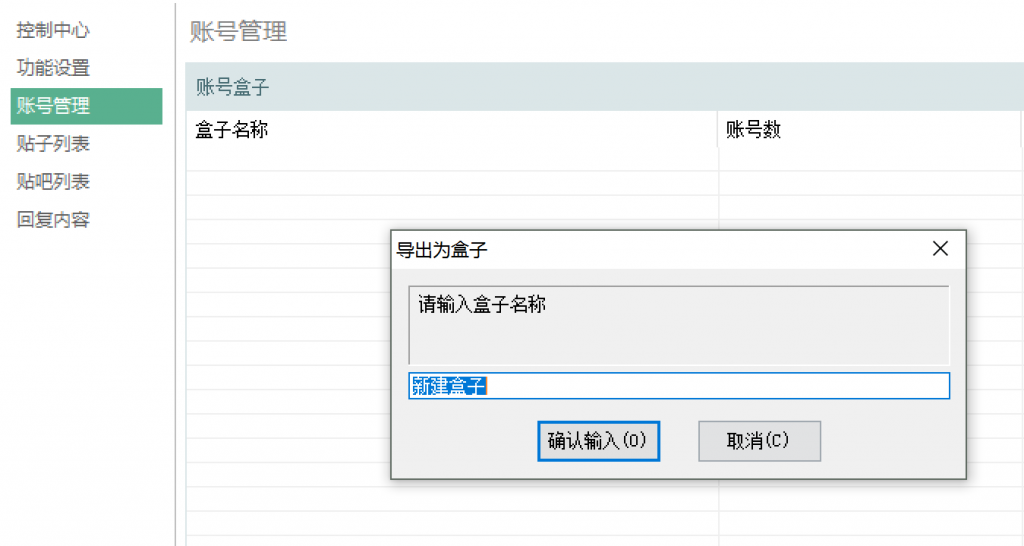 1.在账号管理里右键点击列表选择新建,新建一个账号盒子,